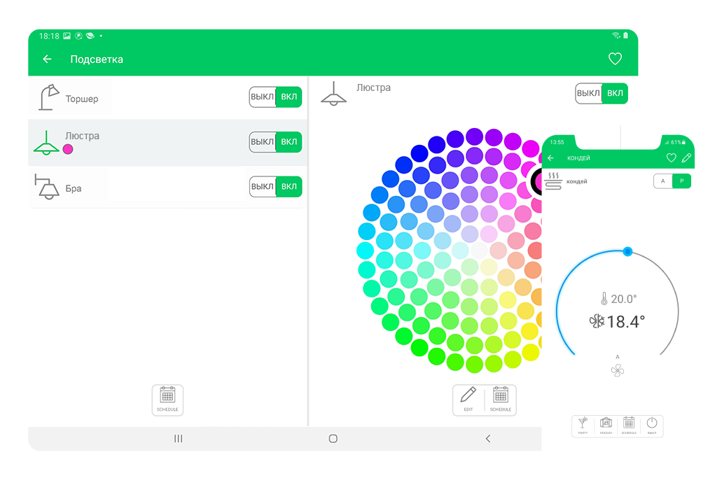 Управляйте светом, кондиционером, тёплым полом, шторами или другими устройствами, регулируйте музыку и звук.